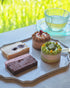 有機抹茶を贅沢に使用した抹茶の生地に、あずきのクリームをサンド。上に乗った抹茶のRawチョコレートとともにお楽しみください。